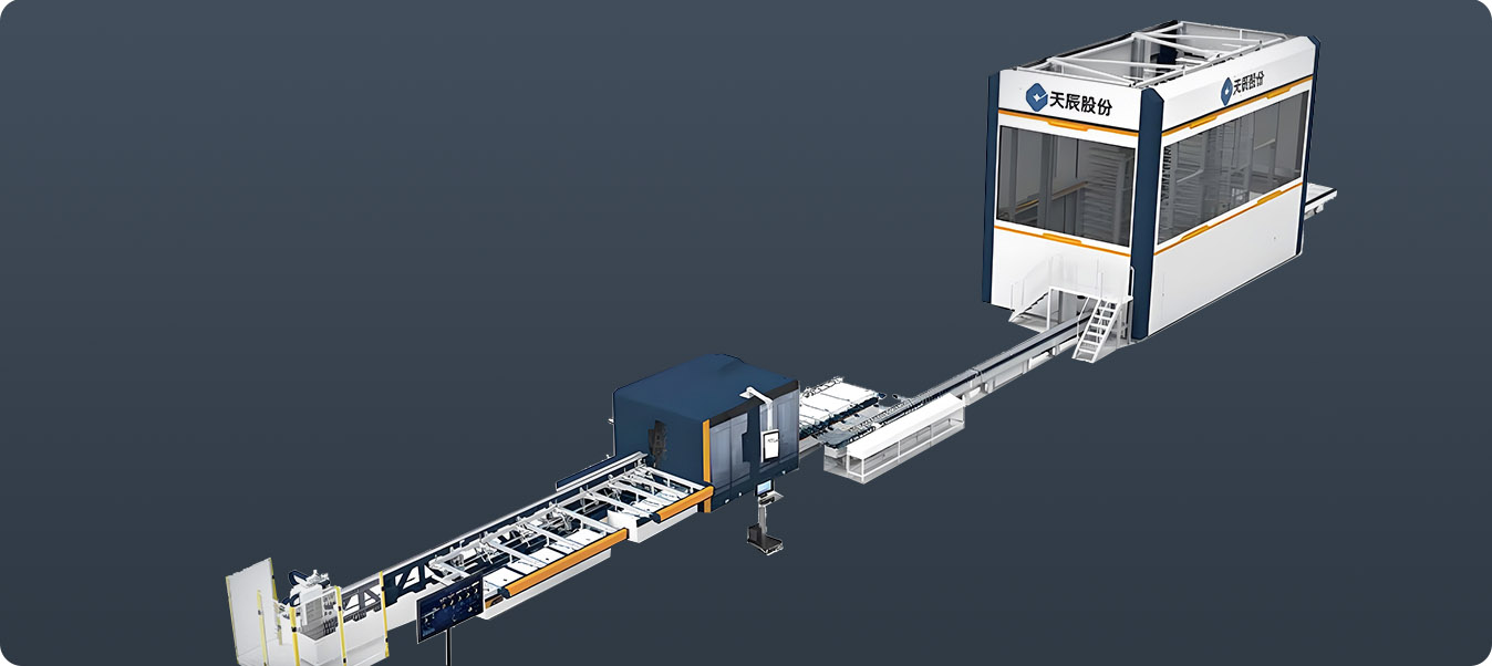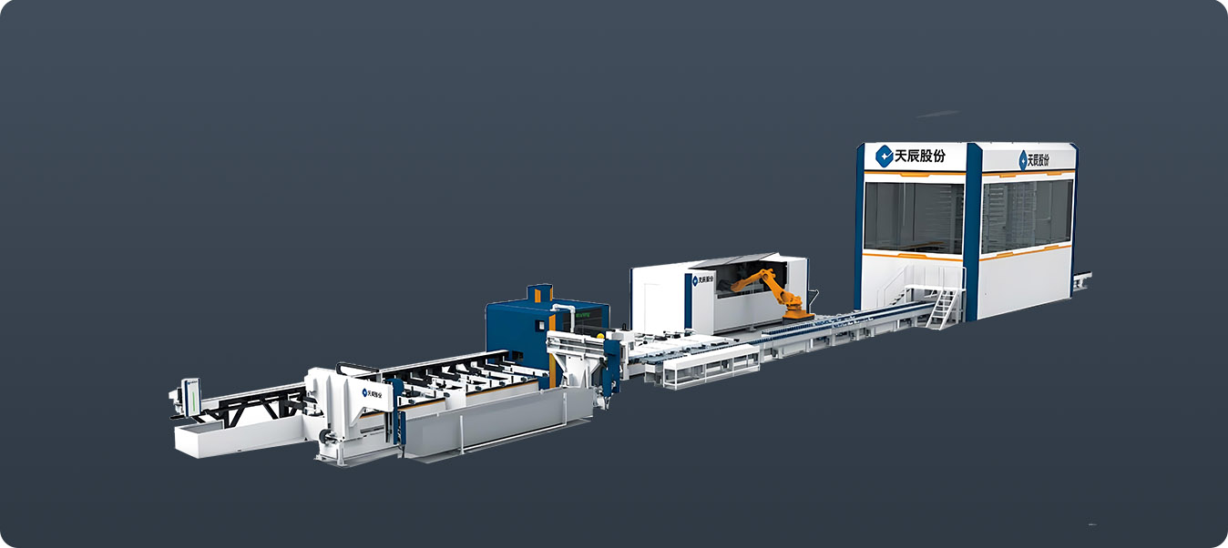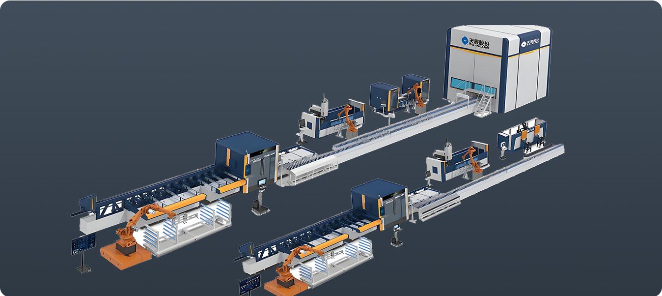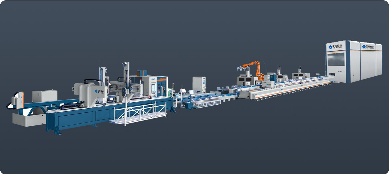 行業(yè)領(lǐng)先的幕墻智能生產(chǎn)線,可完成幕墻公母立柱、橫梁、裝飾線條等多種型材的智能鋸銑加工。在天辰 MES 中控系統(tǒng)的精準(zhǔn)管控下,實(shí)現(xiàn)自動(dòng)上料、智能鋸銑、自動(dòng)分揀、機(jī)器人柔性搬運(yùn)、加工中心智能鉆銑、全自動(dòng)下料碼垛。